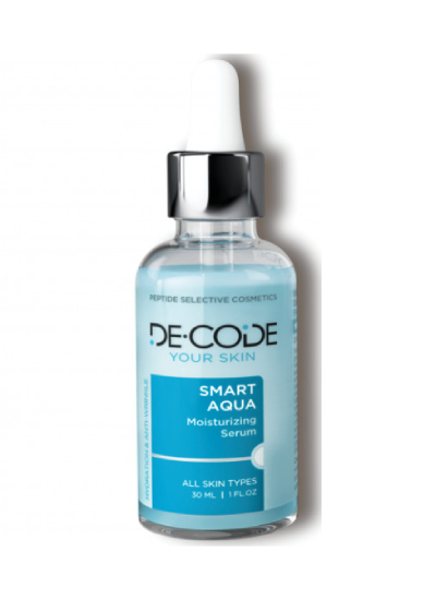 В составе аква-сыворотки Smart Aqua, De-Code Your Skin — гиалуроновая кислота, голубая водоросль и пептиды. Отличный микс для увлажнения и питания кожи. Кроме этого, средство имеет анти-эйдж эффект и радует очень приятной текстурой, которая буквально тает на лице.