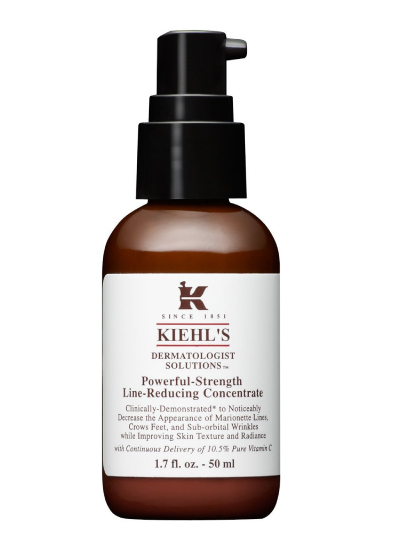 В концентрат против морщин Powerful-Strength, Kiehl’s помимо гиалуроновой кислоты добавлено 12,5% витамина С, отвечающего за ровный тон лица и сияние.