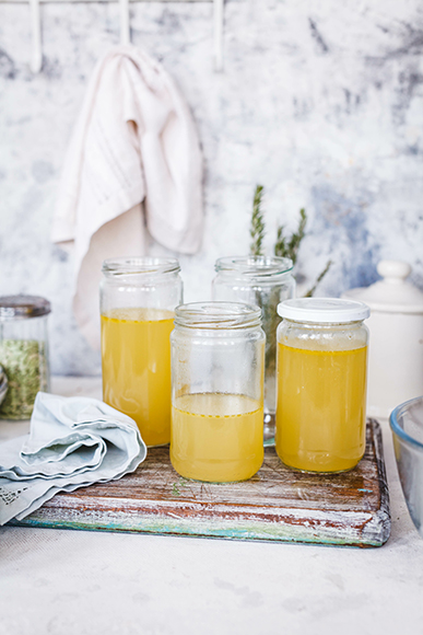 Важно: не обязательно варить бульон в один прием, это можно делать и с перерывами, главное, чтобы общая продолжительность была не меньше 20 часов. Можно использовать говяжьи, бараньи, рыбные кости — не только кости птицы и дичи. Варить мясные кости нужно до 36 часов, а рыбные — около 8 часов.