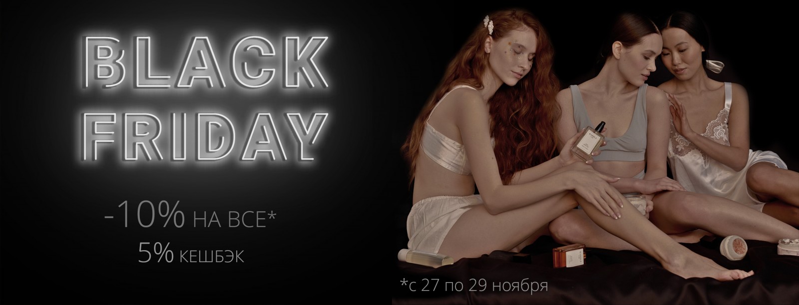 В Marble Lab Черная пятница начнется 27 ноября и завершится 29 ноября. В этот период в интернет-магазине бренда будет действовать скидка 10% на все средства. А также обещают 5% кэшбэк на карту клиента при покупке.