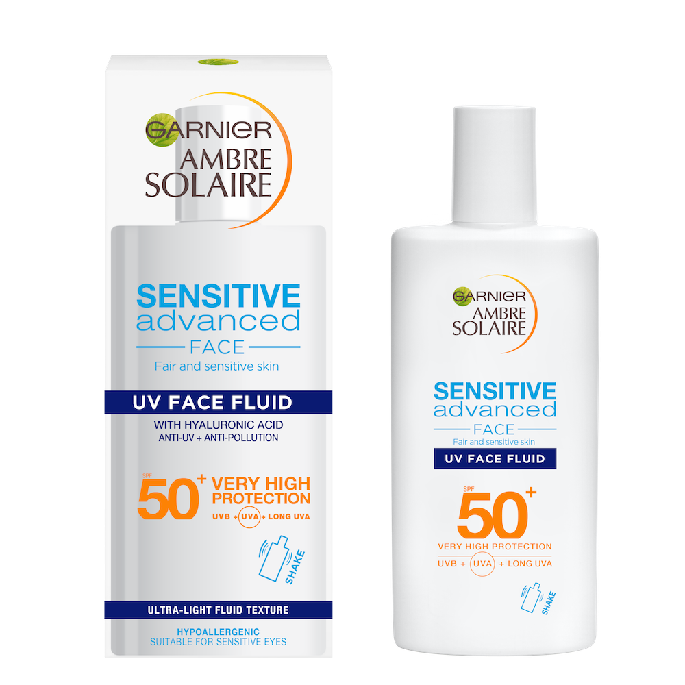 Солнцезащитный флюид для лица FLUIDE VISGE ANTY-UV с уникальной формулой SAFE GUARD TECH Эксперт Защита SPF 50, Garnier Ambre Solaire