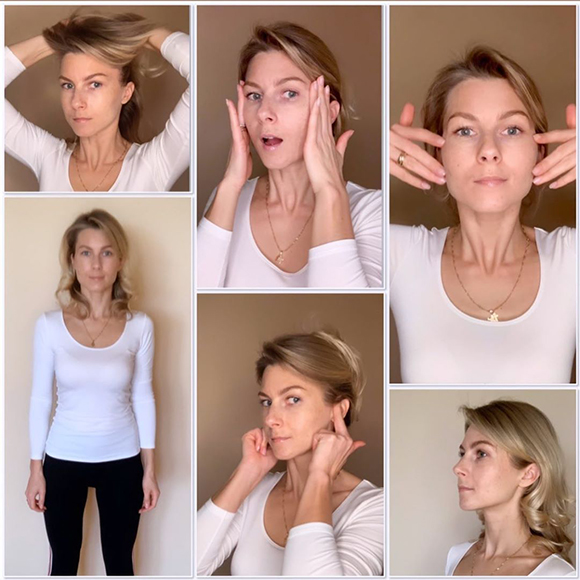 Первые небольшие изменения я заметила после первой тестовой недели, было приятно, но я все равно воспринимала это, как забавное развлечение по утрам. Глобальный эффект увидела в конце второй недели, когда Ольга попросила сделать фото для сравнения. Закончилась тренировка, я себя сфотографировала, посмотрела, ничего не поняла. Решила сделать коллаж из нескольких снимков (его вы видите в материале) и обомлела – результат был очень заметный, подтянулся овал лица и ушла отечность. Прогресс от занятий был явным и придавал сил идти дальше.