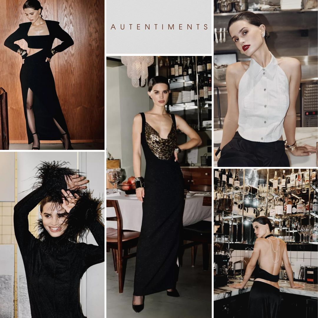 Новогодняя коллекция Autentiments разрабатывалась совместно с дизайнером Романом Кянджалиевым. Источник вдохновения — эстетика красных дорожек Голливуда 90-х, которой характерны классические силуэты, выверенный крой, дорогие материалы и акцентный декор. Главные цвета – черный, белый и золотой. И важно, что все модели будут актуальны не один сезон.