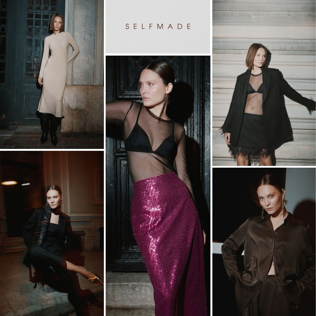 В новогодней капсуле Selfmade можно найти как более сдержанные варианты для официальных вечеринок, так и притягивающие взгляд яркие образы. Цветовая палитра тоже впечатляет: классический черный, приглушенный шоколадный и белый отлично дополняет оттенок с фиолетовым подтоном, похожим на Viva Magenta — главный цвет 2023 по версии Pantone. Также на сайте представлены модели в нежно-розовом, синем, зеленом и красном цветах.