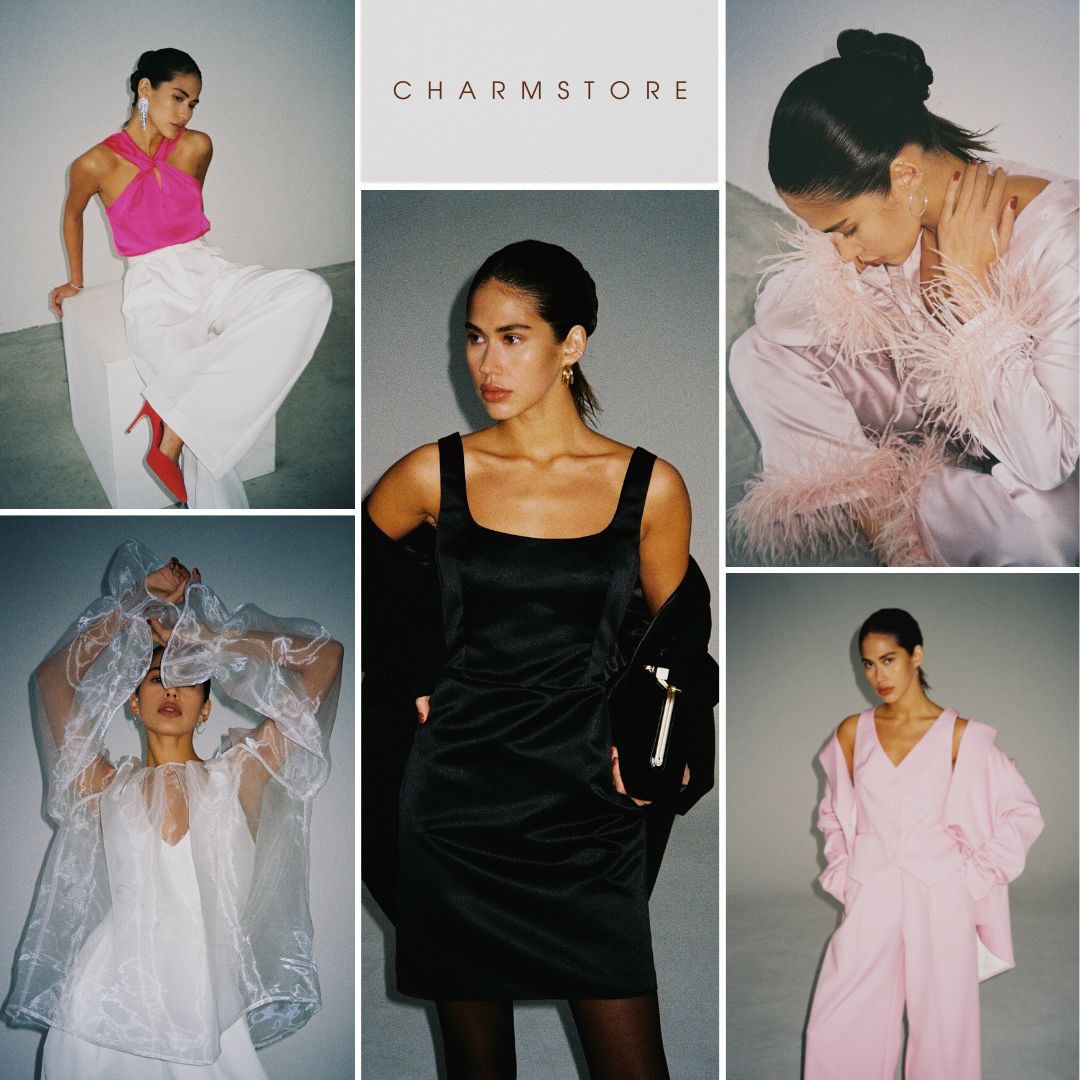 В New Year капсулу Charmstore вошли элегантные платья-комбинации из атласа различной длины, а также костюмы-тройки в нежных оттенках, блузы из органзы и топы из атласа. Также не обошлось без перьев и полупрозрачных тканей. В целом, коллекция получилась одновременно сексуальной и нежной. Каждая девушка найдет модель, подходящую для ее настроения.