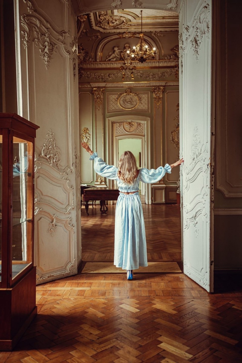 Самый женственный, испытанный временем вариант ― платья макси или миди из легкой, струящейся ткани и, обязательно с оригинальной деталью, какой может быть: рукав на одно плечо, декоративный узел, бант, асимметричный разрез, запах, свисающие фалды, рукава-буф или фонарики. Если вы предпочитаете любимое черное платье, то акцент можно сделать на новом ярком аксессуаре, добавить к образу пиджак оверсайз или блестящую накидку.