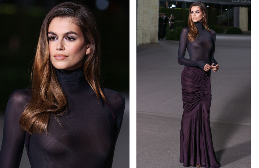 Давно забытые «голые» платья снова в тренде. Но теперь они полностью закрытые, а просвещаются только до талии. На гала-вечере Музея Американской киноакадемии в подобных появились сразу две звезды — модель Кайя Гербер в наряде Alaïa темно-фиолетового цвета, а также актриса и режиссер Оливия Уайлд в Alexandre Vauthier серебристого оттенка с подолом из розовых перьев.