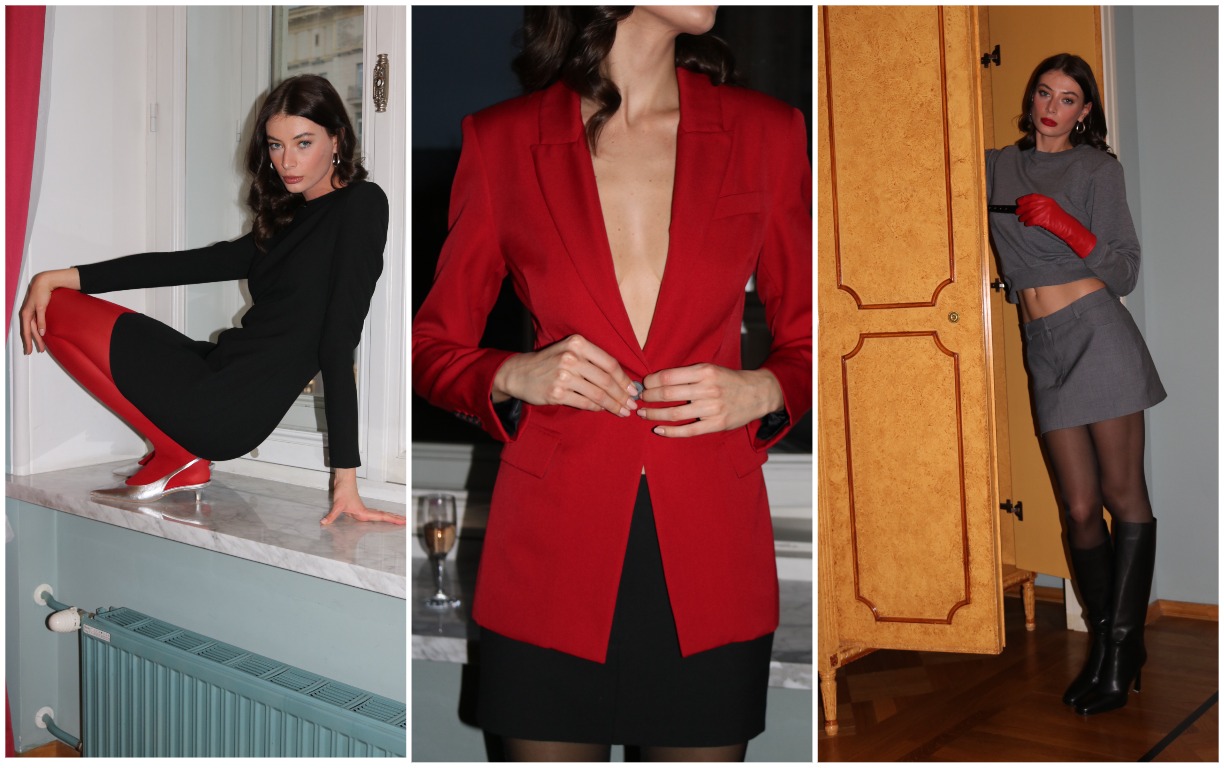 Еще один новогодний подарок — запуск премиальной линейки Rejo Studio, которую открывает лимитированная капсула из мягкого черного бархата: оверсайз пиджак с акцентными пуговицами, боди с глубоким V-образным вырезом и чепчик, который точно станет главным аксессуаром в праздничную ночь.