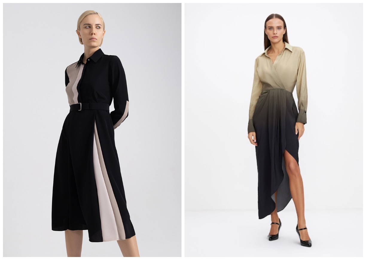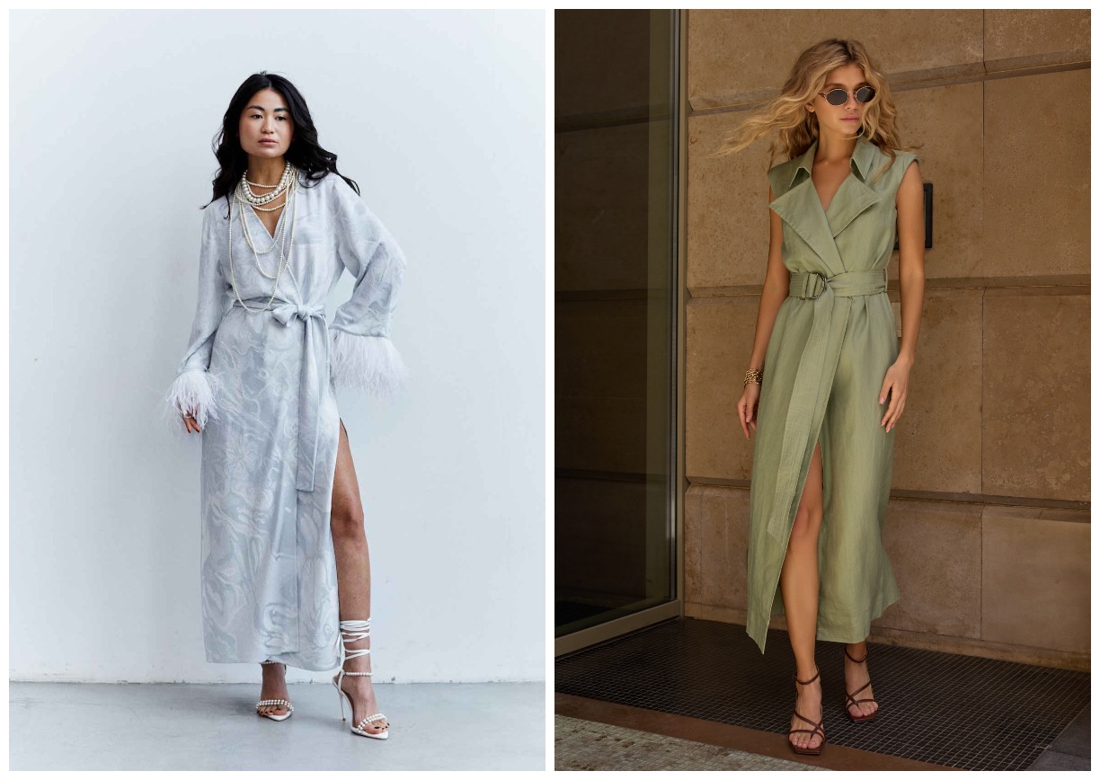 Платье с запахом – победитель в вопросе визуальной коррекции фигуры. А если на нем есть разрез по центру, то оно даст еще и эффект уменьшения объема в зоне бедер и увеличения длины ног. Такое платье может быть как приталенным, так и свободного кроя. У платья с запахом, как правило, V-образный вырез – это прекрасная комбинация, которая выгодно подчеркивает линию декольте и создает баланс верхней и нижней части фигуры.