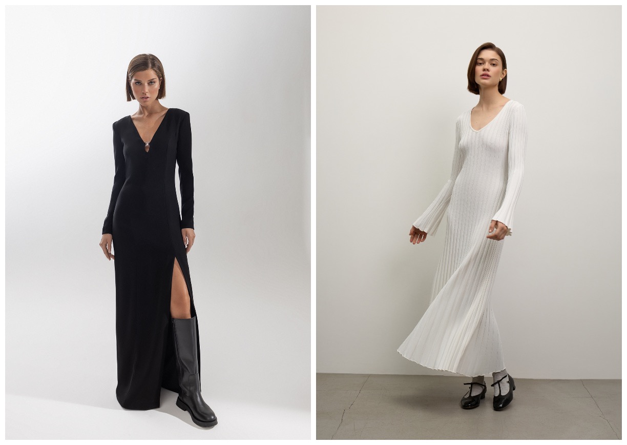 Такие формы выреза визуально удлиняют верхнюю часть тела, балансируя низ, а также они элегантно подчеркивают зону декольте. Сегодня этот фасон легко найти в магазине: он есть в ассортименте многих российских дизайнеров.