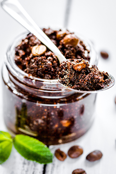 Кофе – самый доступный продукт для домашнего скраба. Можно использовать обычный молотый (годятся даже самые бюджетные варианты) или вовсе оставлять кофейный жмых после заваривания и добавлять его в скраб. Чем хорош именно этот компонент? Во-первых, кофе сам по себе здорово очищает кожу. Во-вторых, он хорошо работает именно в проблемных местах, разглаживая их, снимает отеки и ускоряет обмен веществ. А в-третьих, это самая универсальная основа для любого скраба. В нее можно добавлять любимые эфирные масла, мед, сахар, соль, чай, корицу – получится настоящий десерт для кожи! Вот восемь простейших рецептов.