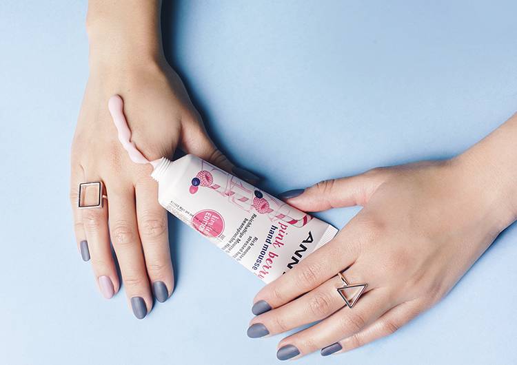 Обратила на него внимание благодаря текстуре мусса и легкому нанесению — он буквально тает во время использования. Хорош и в качестве подарка младшим подругам или детям — вкусно пахнет ягодами. Неплохо увлажняет и ухаживает за кутикулой.